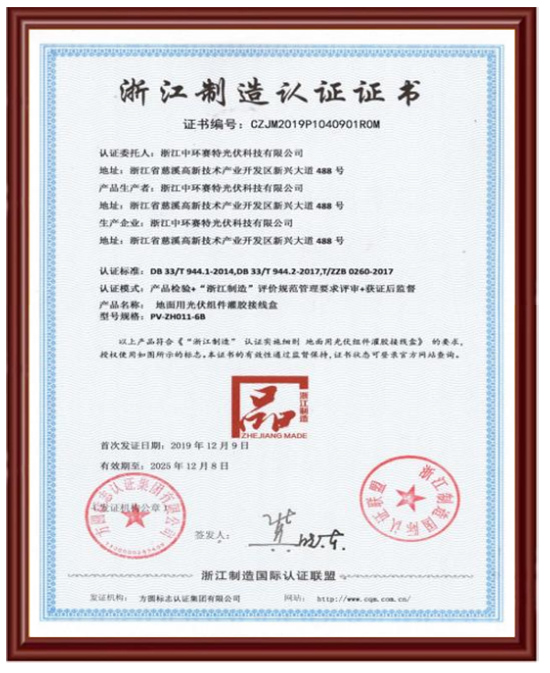 公司产品已通过TUV,UL,IEC,JET,ROHS等国际认证,企业还通过ISO9001、ISO14001、OHSAS18001管理体系认证。产品受到了国内外客户的一致好评,并享有很高的声誉。